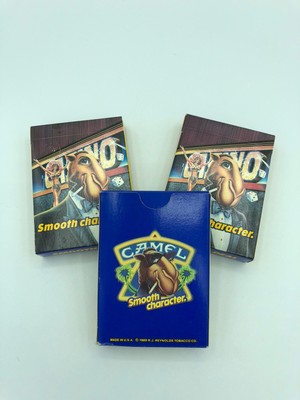 Lot of 6 cigarette & tobacco signs. Reynolds (rjr), looking for an idea to promote camel's 75th anniversary. Joe camel (officially old joe) was the advertising mascot for camel cigarettes from late 1987 to july 12, 1997, appearing in magazine advertisements, billboards, and other print media. 1) natural egyptian cigarettes with illustration of middle eastern traveler with his trusty steed. Cool light commercial featuring john wayne and johnny knoxville vhs grave yard series.