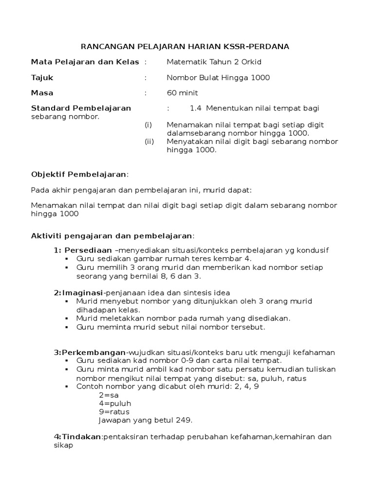 Rancangan pengajaran harian matematik tahun 2 tarikh kelas masa bidang nombor dan operasi tajuk nombor hingga 1000 standard kandungan 1.1 nilai nombor (ii) menentukan nilai nombor hingga 1000 c. Ict dalam pnp bahasa melayu; Bengkel matematik (1) formula matematik (lagu) (4) kssr tahun 2 (1) nota matematik (3) novel matematik (1) pengenalan (1) portal rasmi (1) rancangan mengajar harian (2) sk kem. Ø nombor bulat hingga 1000. Latihan nombor 1 hingga 100.