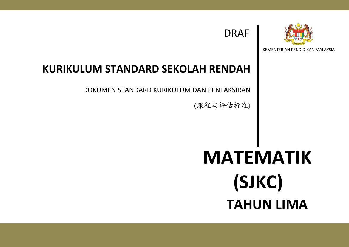 Kementerian pendidikan malaysia matematik kurikulum standard sekolah rendah dokumen standard kurikulum dan pentaksiran draf tahun lima ¸½¢¾õ ¦¾¡¼ì¸ôàûç¢ text of dskp matematik tahun 5 sjkt.
